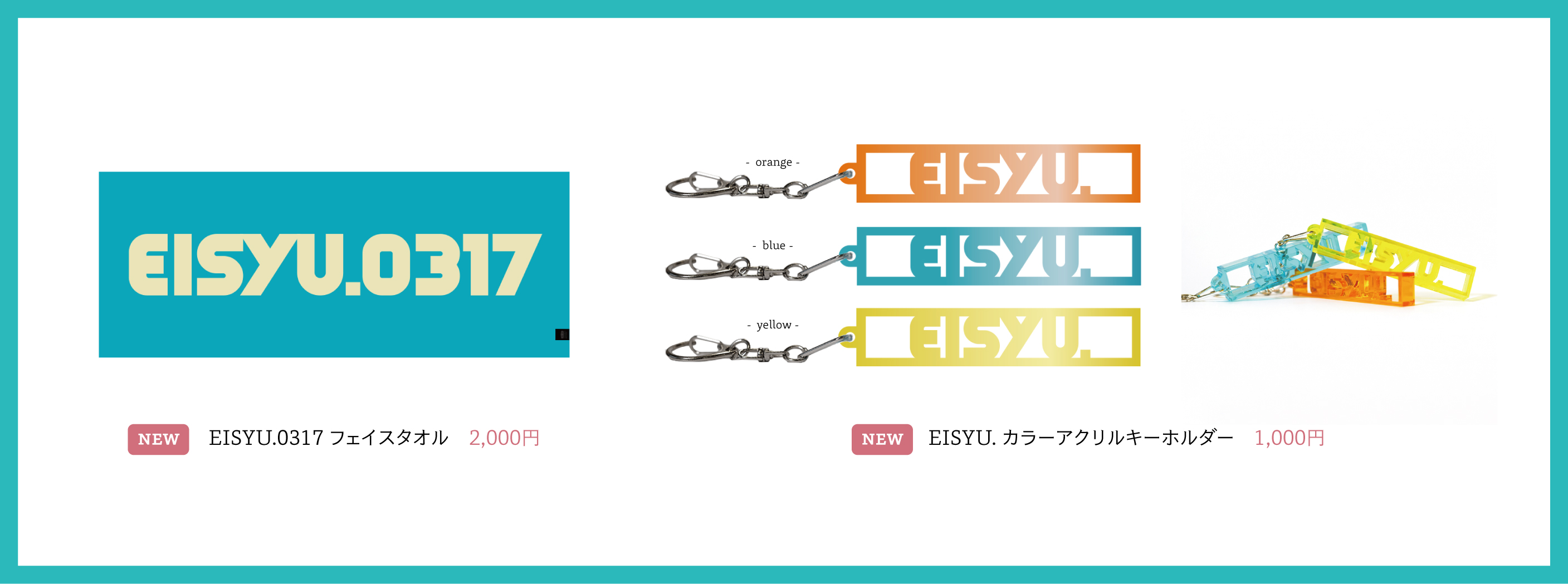 NEW定番タオルとカラーアクリルキーホルダー(全3色)の登場です!